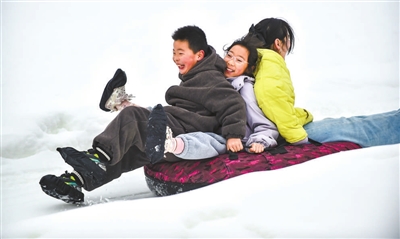 1月3日,孩子们在河南省洛阳市伊滨区一滑雪场游玩。新华社发