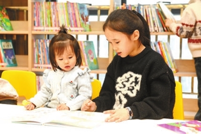 1月2日,小朋友在河北省石家庄新乐市图书馆看书。