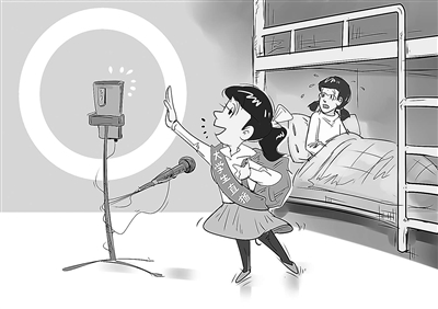 在社交平台上,有大学生发帖称找到了“致富新路子”。虽然一些大学生通过直播尝到了“甜头”,但其直播行为直接影响了正常学习秩序和宿舍关系,引发重重矛盾。加强对大学生直播的正向引导,高校责无旁贷。 如今不少大学生将直播场所选在了寝室,这也是发生宿舍矛盾的直接导火索。高校首先要做的是,强化规则意识,加强直播管理。通过完善规章制度,正向引导学生遵守宿舍管理规则。对因直播影响他人休息的学生,应依规提醒或者作出相应处理。 加强大学生的价值取向引导也要跟上。大学生的主业是学习,任何直播行为都应以不影响学业为前提。在大学生入学之初,以及成长的关键节点,高校可以借助职业规划指导服务、相关专题讲座等形式,帮助大学生在学业、实习、就业等方面作出理性抉择。