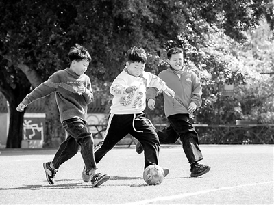 1月8日,贵州省从江县刚边壮族乡中心小学学生在课间踢足球。罗京来 摄