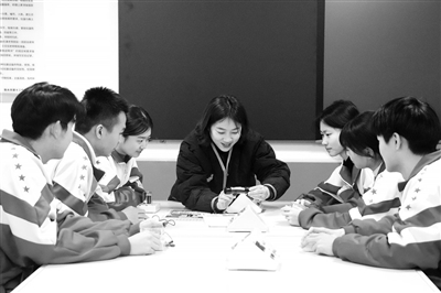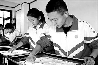 学生在孙敬学堂研学体验沙画制作。王贝贝 摄