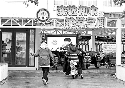 ①江苏省泰州市姜堰区实验初级中学“护学空间”由老旧车棚改造而成,外观新颖、设备齐全,受到学生、家长欢迎。 新华社记者 季春鹏 摄